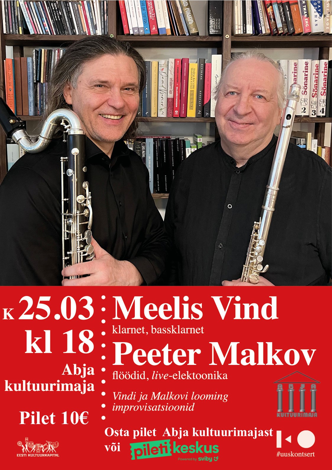 Kontserdisari “Muusika 108 Eestimaale” kontsert – Meelis Vind( klarnet, bassklarnet ), Peeter Malkov ( flöödid, live-elektroonika )